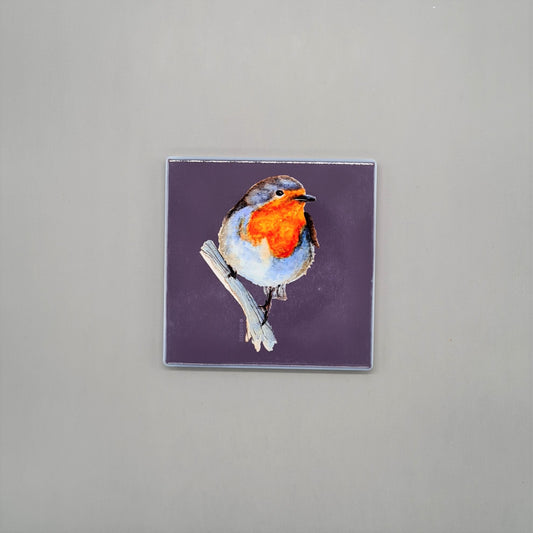 Beautiful British Robin Art Ceramic Coaster featuring 'Garden Party Robin' Print