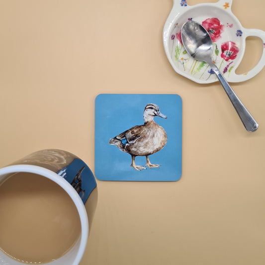 Beautiful Mallard Duckling Art Ceramic Coaster featuring 'Lady' Print