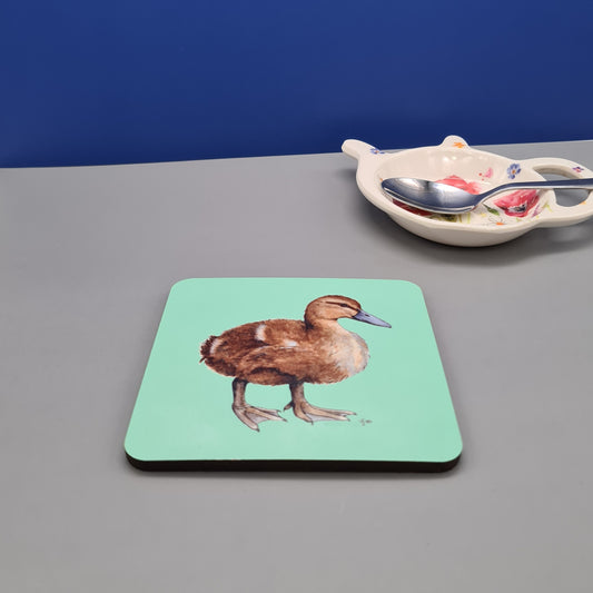 Beautiful Mallard Duckling Art Hardwood Coaster featuring 'Lady' Print
