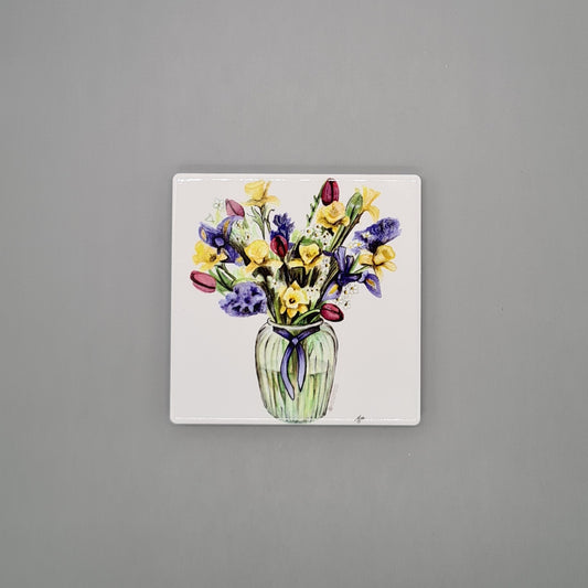 Beautiful Flowers Art Ceramic Coaster featuring 'A Bunch of Spring' Print