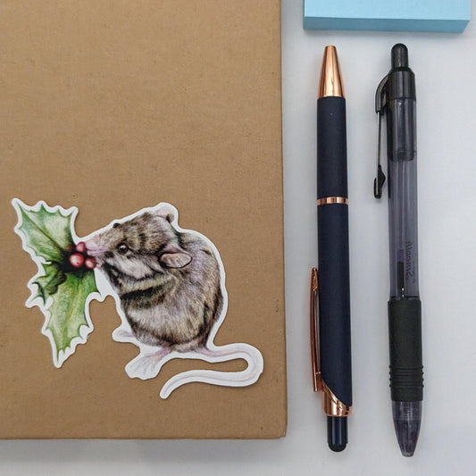 Mouse and Holly Sticker from Original Pencil Drawing "Mallymkun"