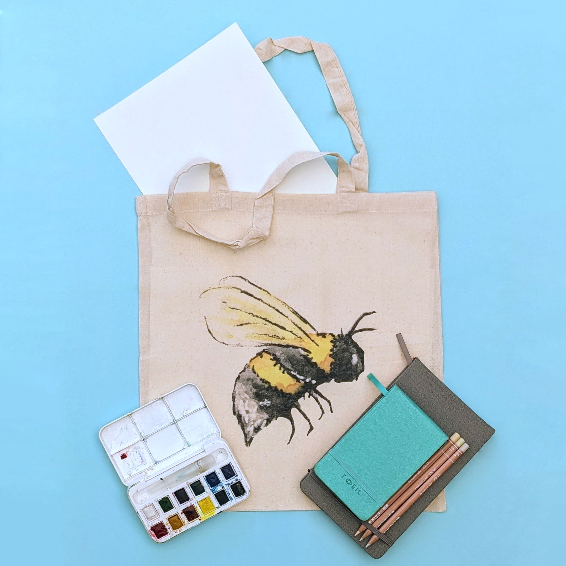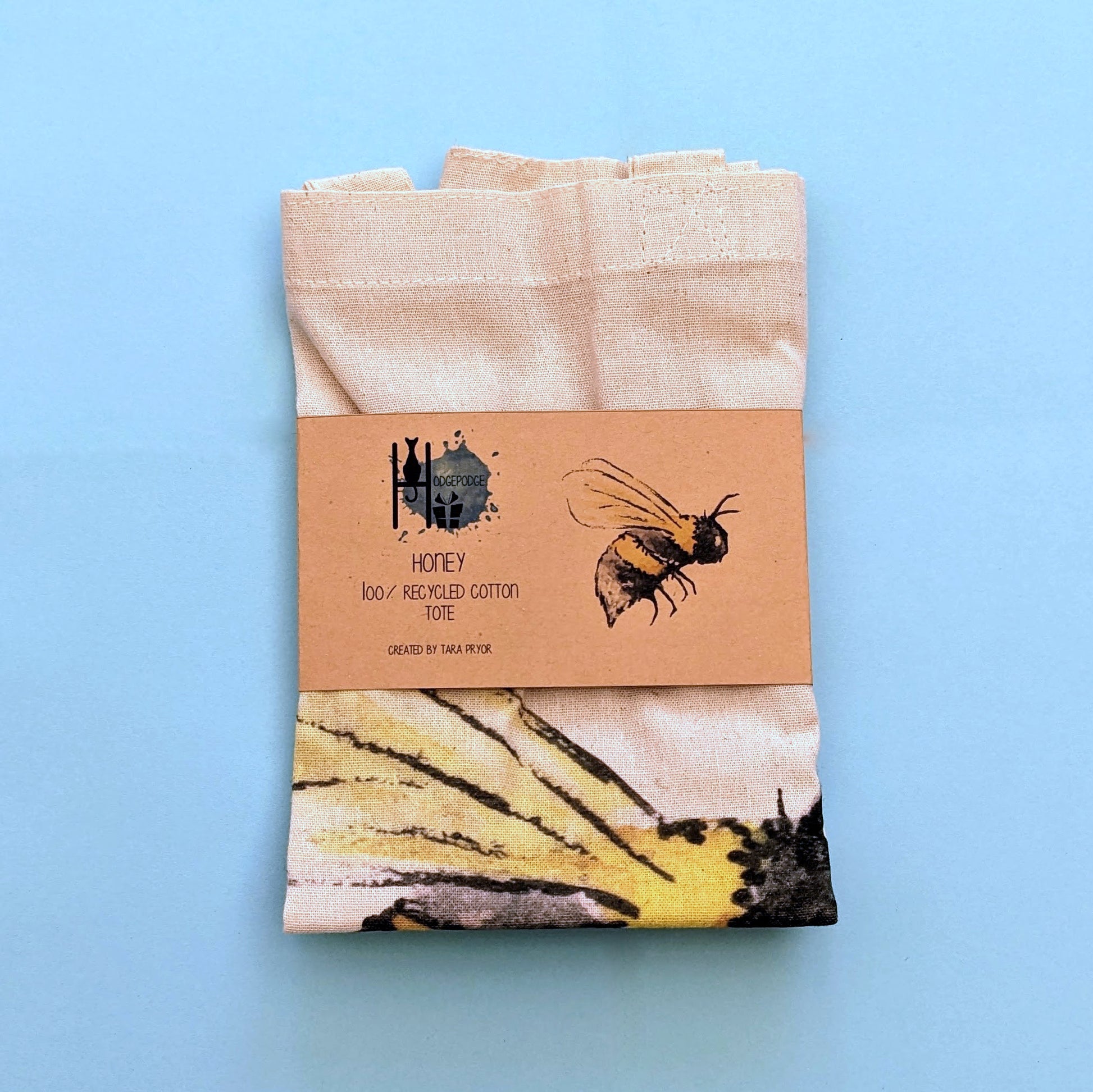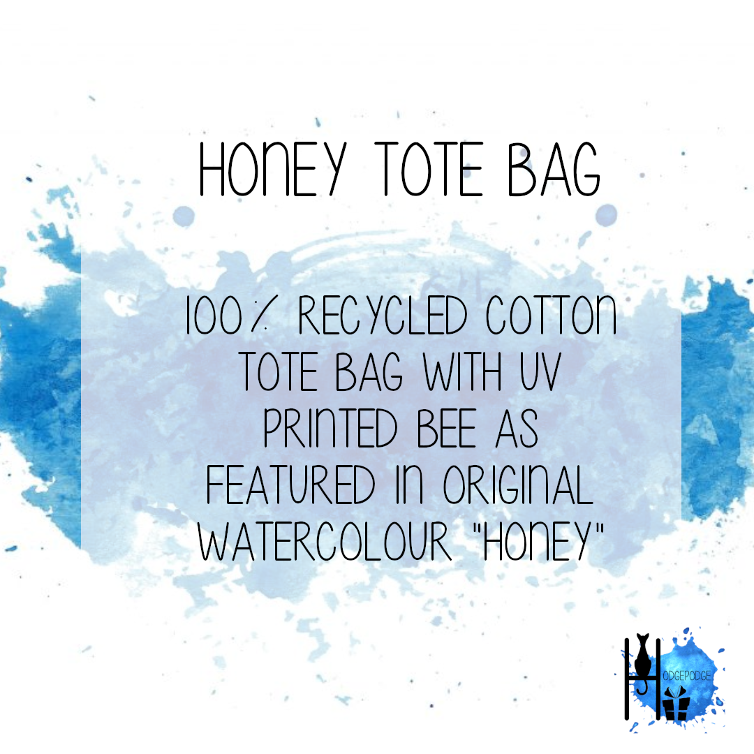 UV printed Tote Bag featuring a print of the original Bee watercolour "Honey" painted by me, Tara Pryor