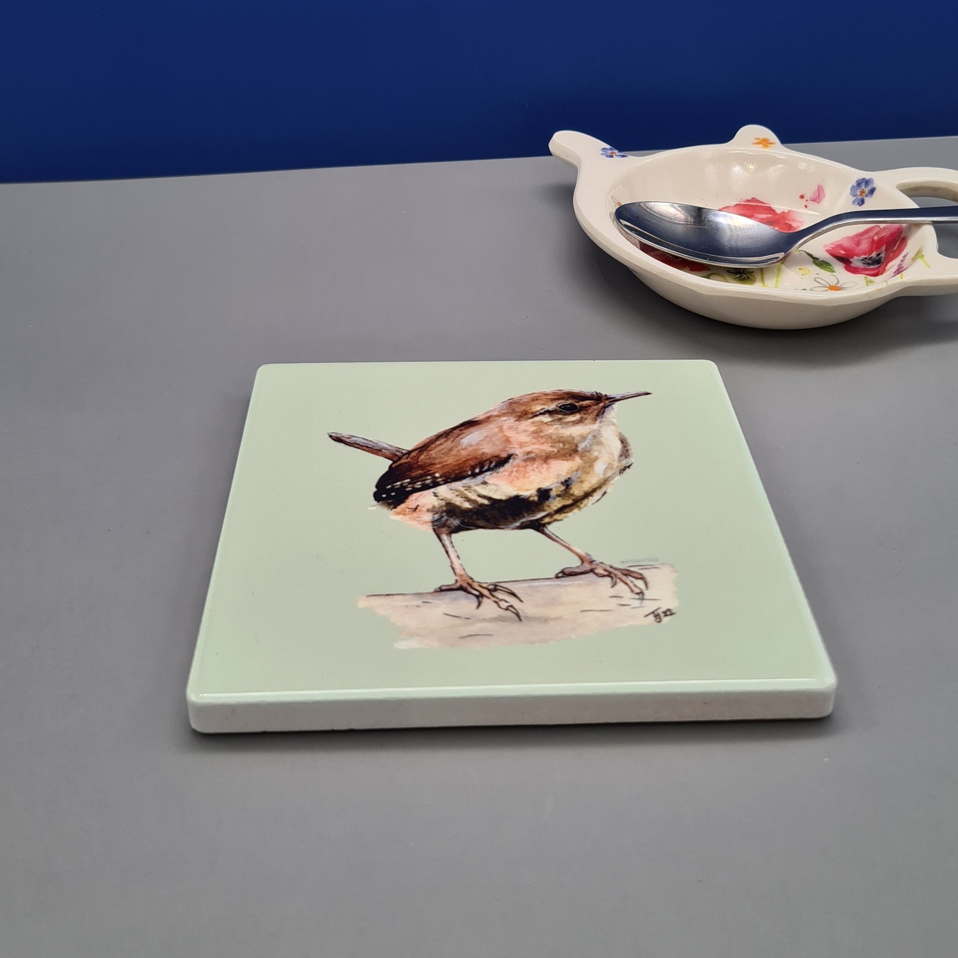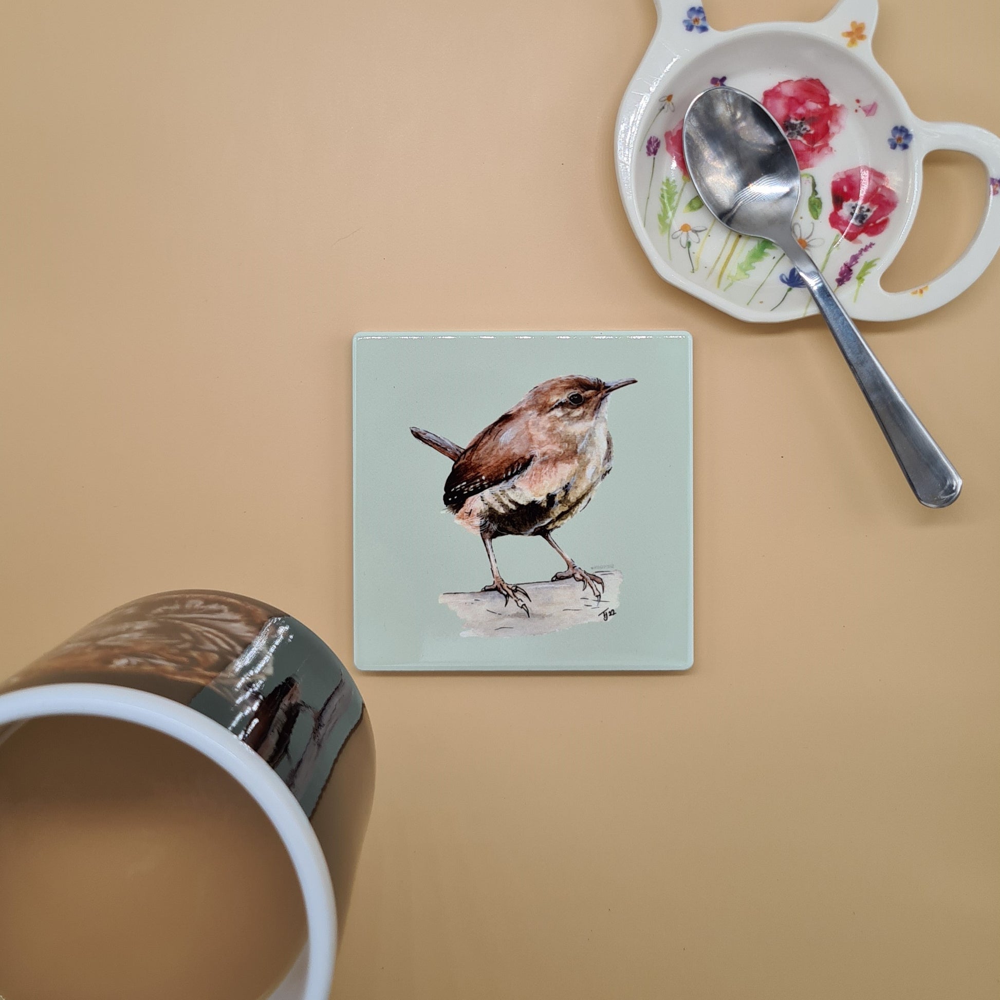 Beautiful British Wren Art Ceramic Coaster featuring 'Jenny Wren' Print