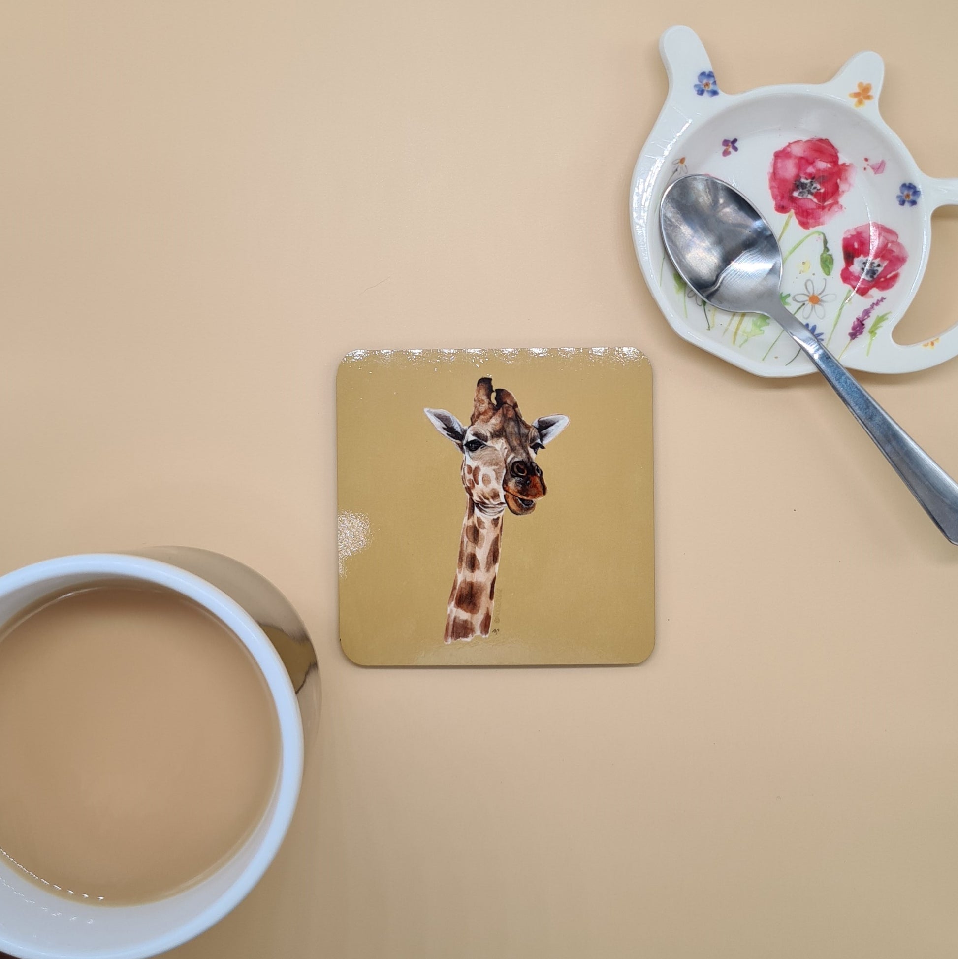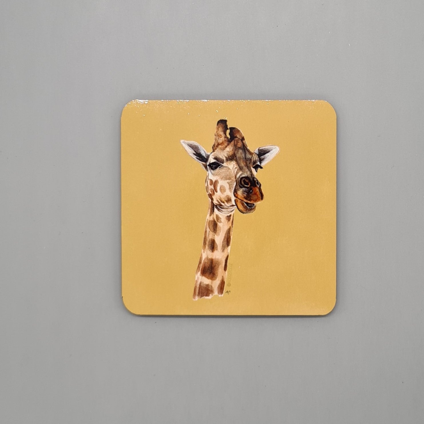 A beautifully illustrated giraffe hardboard coaster featuring a print of my original watercolour painting Stand Tall.