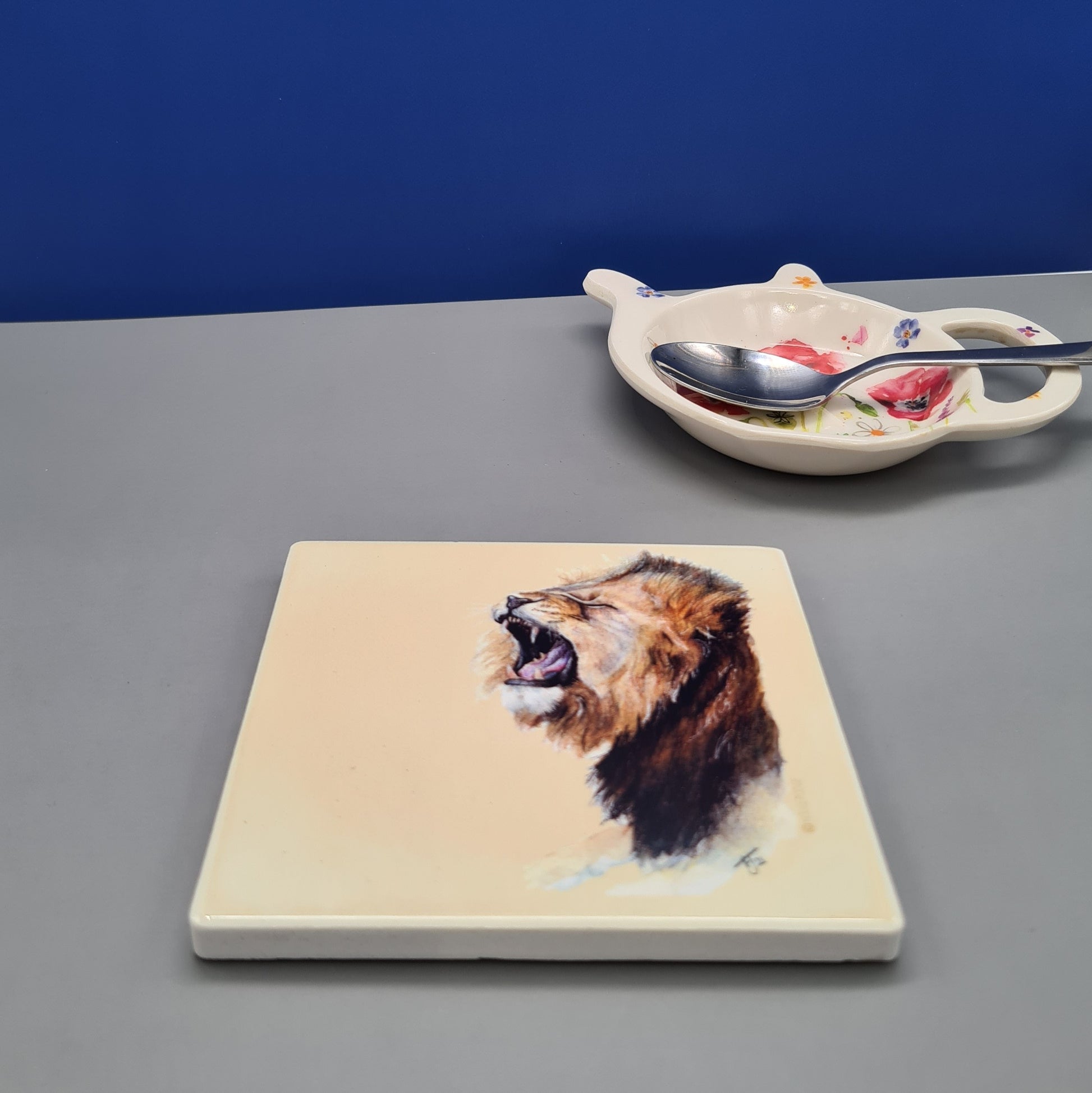 Beautiful Lion Art Ceramic Coaster featuring 'Roarsome' Print