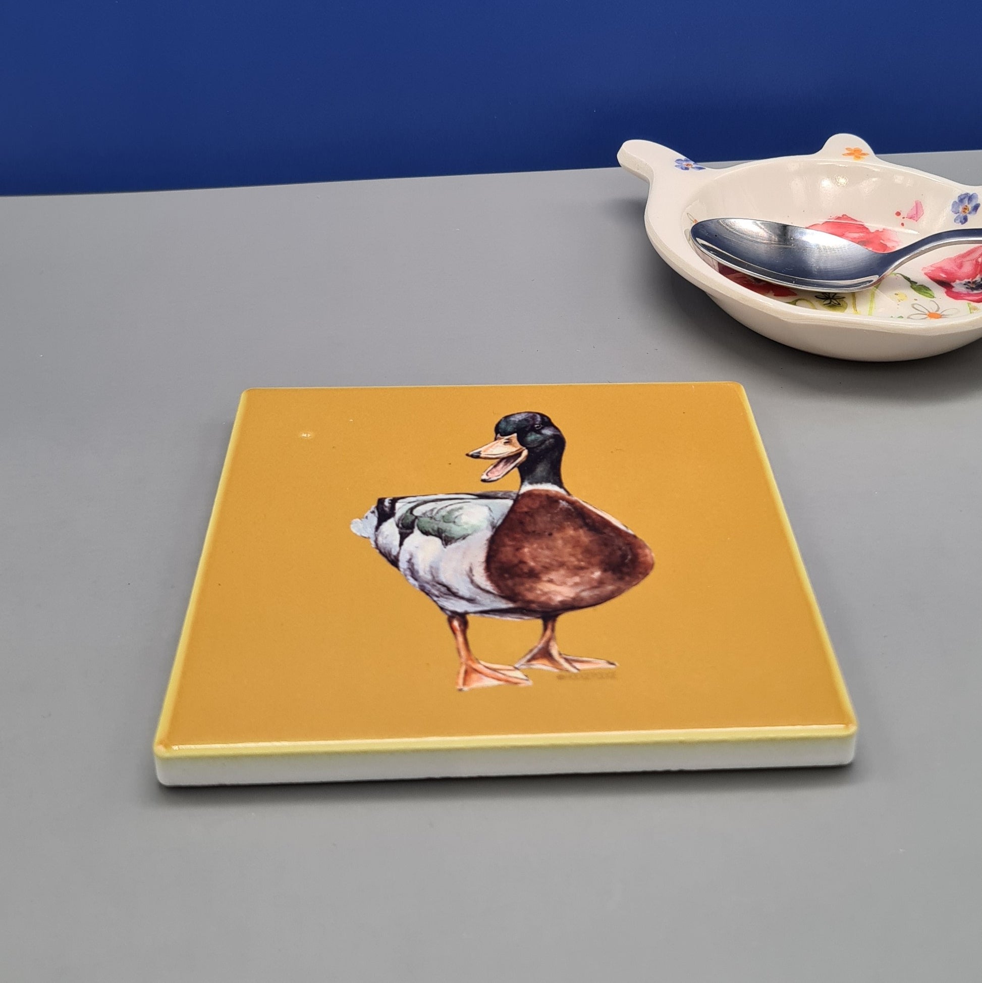 A beautifully illustrated Mallard Duck ceramic coaster featuring a print of my original watercolour painting The Duke.