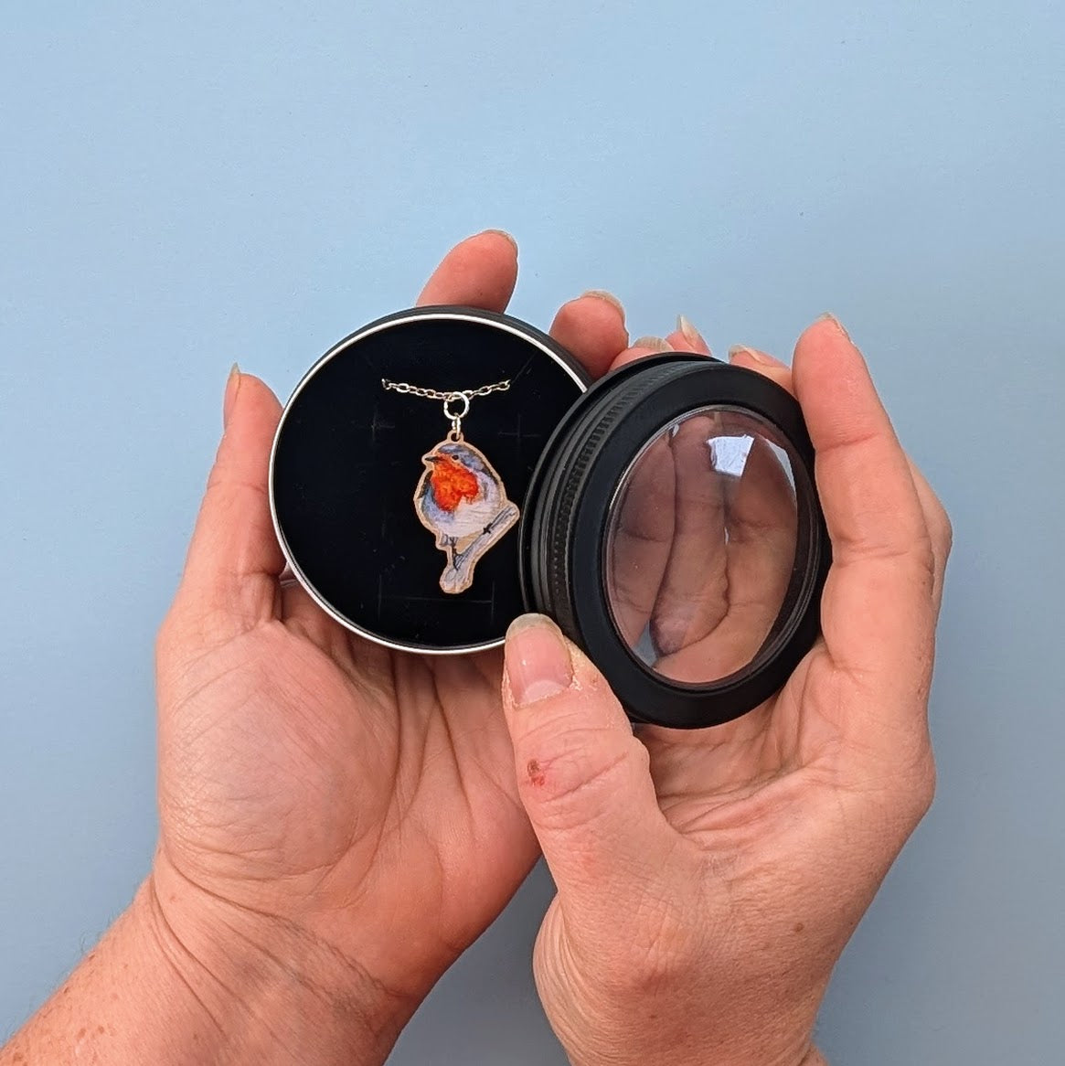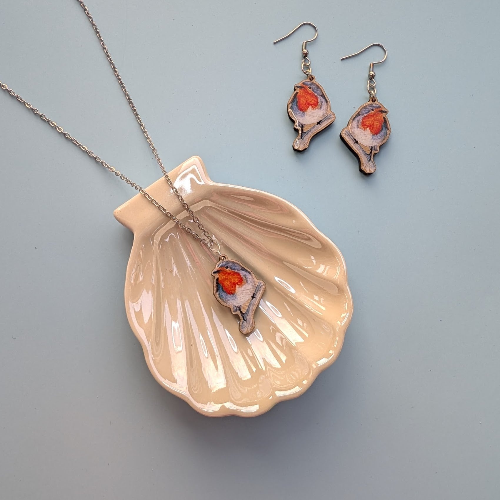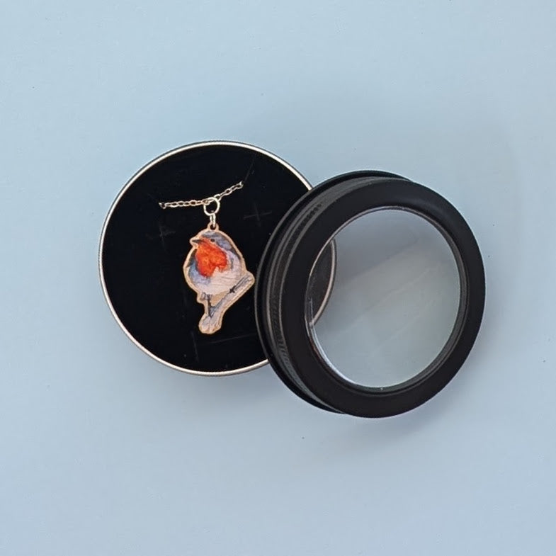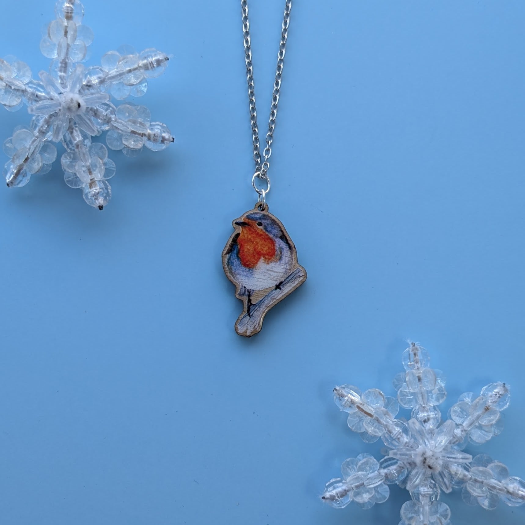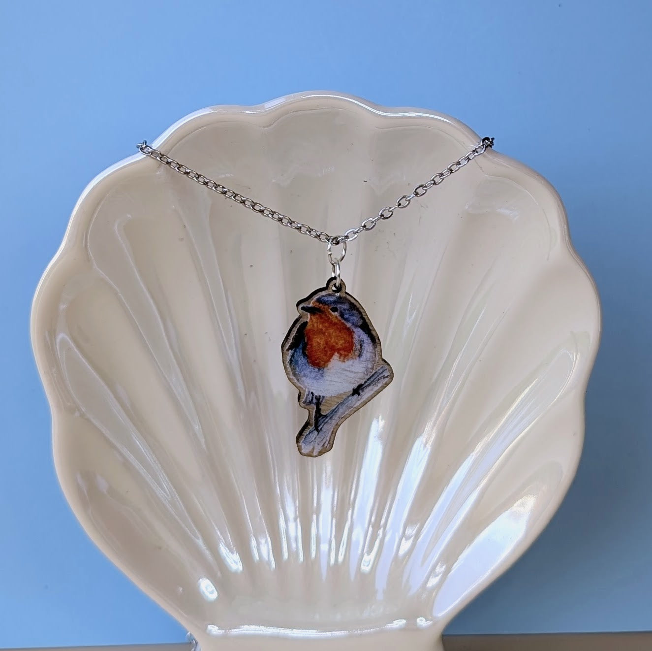 Introducing this beautiful double sided British Robin necklace, featuring the original artwork of me, Tara Pryor, painted originally in 2021. The print has been scanned in and UV printed onto FSC certified birch wood, making it really lightweight and comfortable to wear.