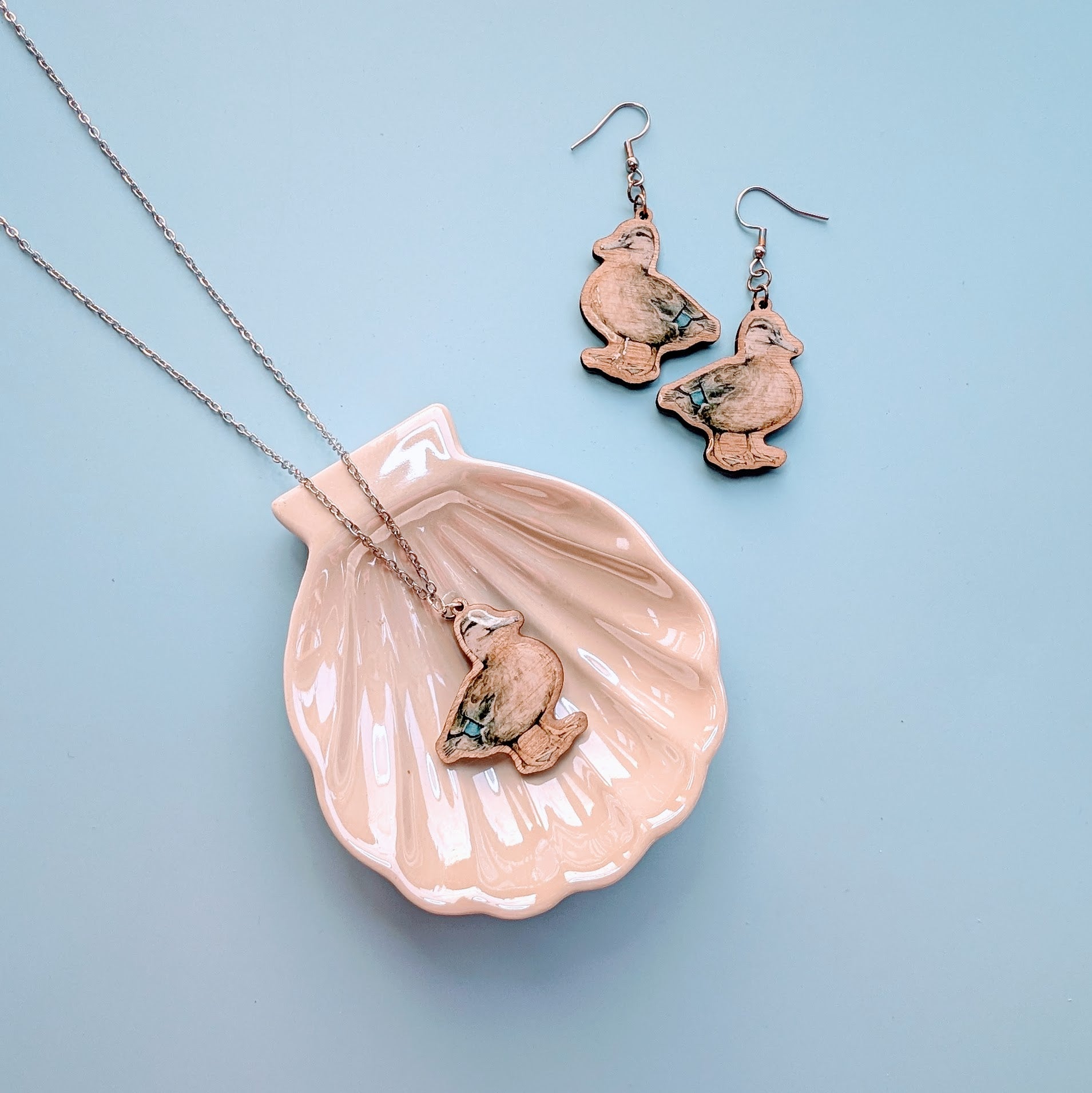 Introducing this beautiful double sided Female Mallard Duck necklace, featuring the original artwork of me, Tara Pryor, painted originally in 2022. The print has been scanned in and UV printed onto FSC certified birch wood, making it really lightweight and comfortable to wear.