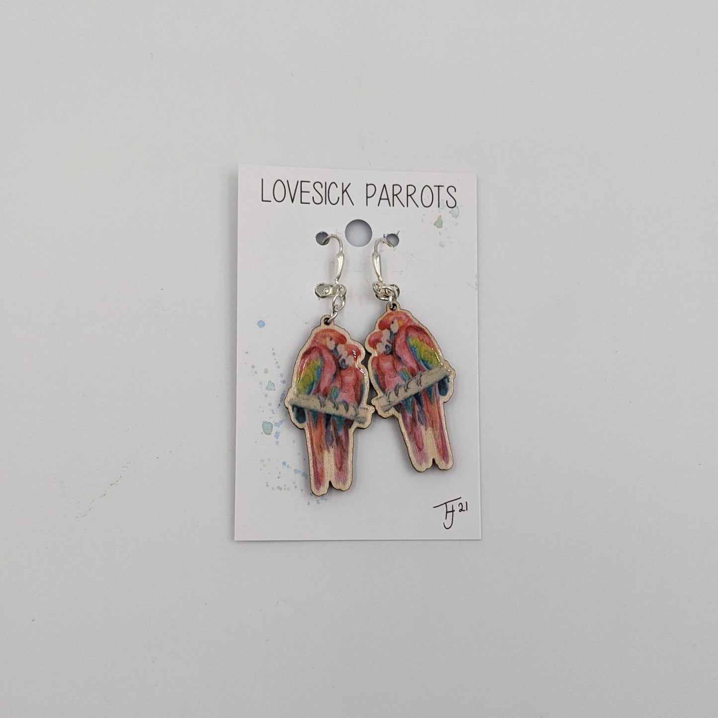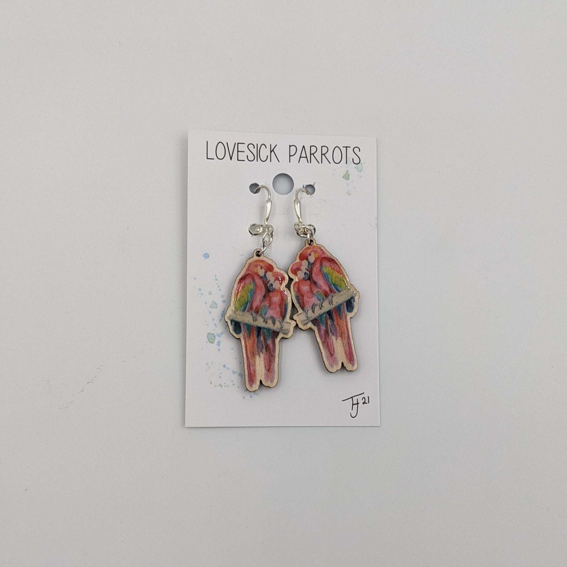 ''Lovesick Parrots'' Macaw Earrings