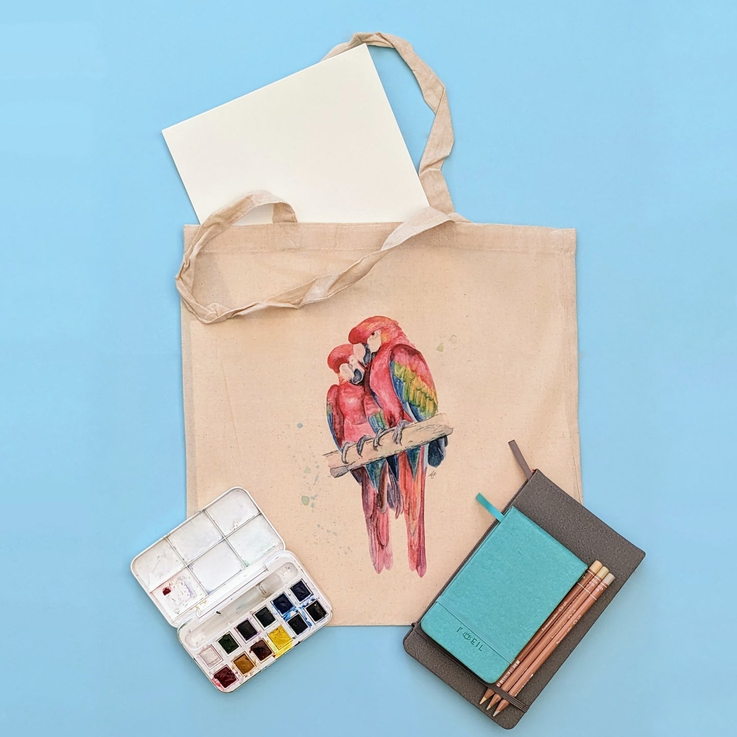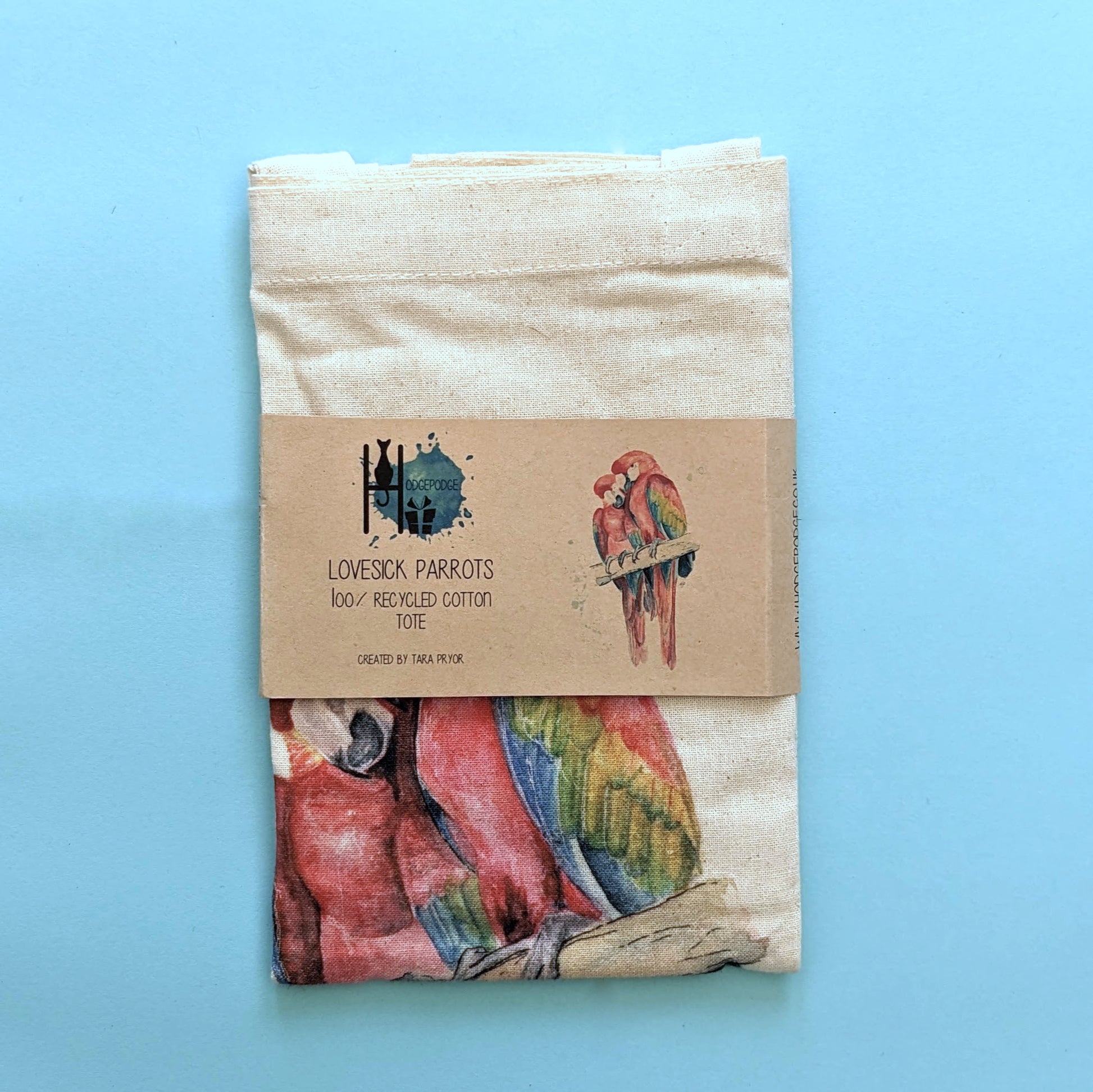 UV printed Tote Bag featuring a print of the original "Lovesick Parrots" watercolour painting