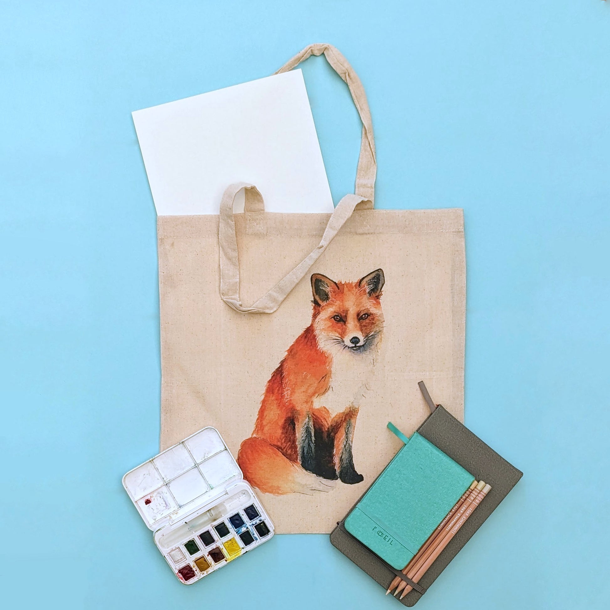 UV printed Tote Bag featuring a print of the original "Mama Fox" watercolour painting