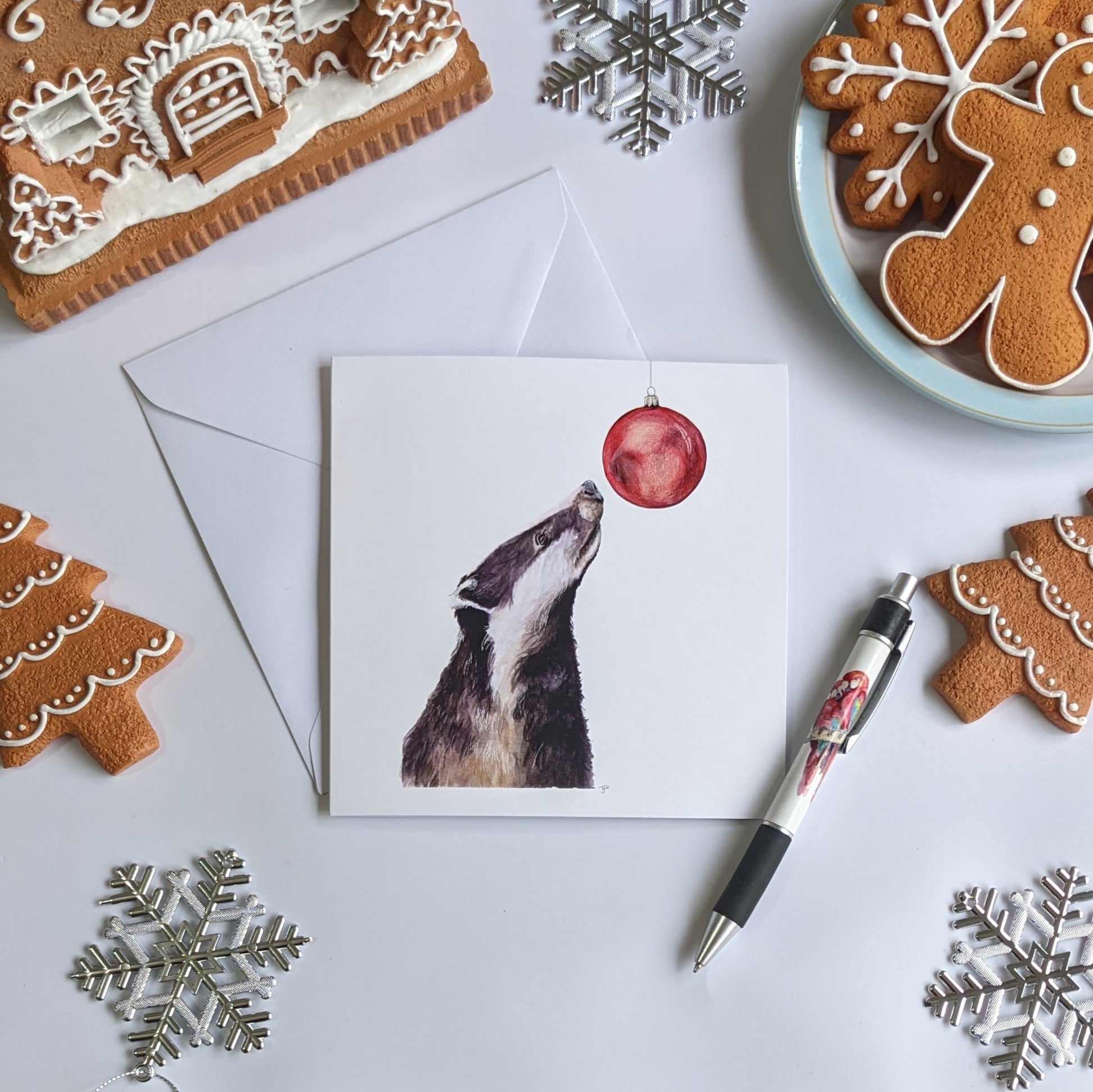 Blank Greetings card featuring a watercolour image of Badger, taken from the original watercolour ''Mr Badger''