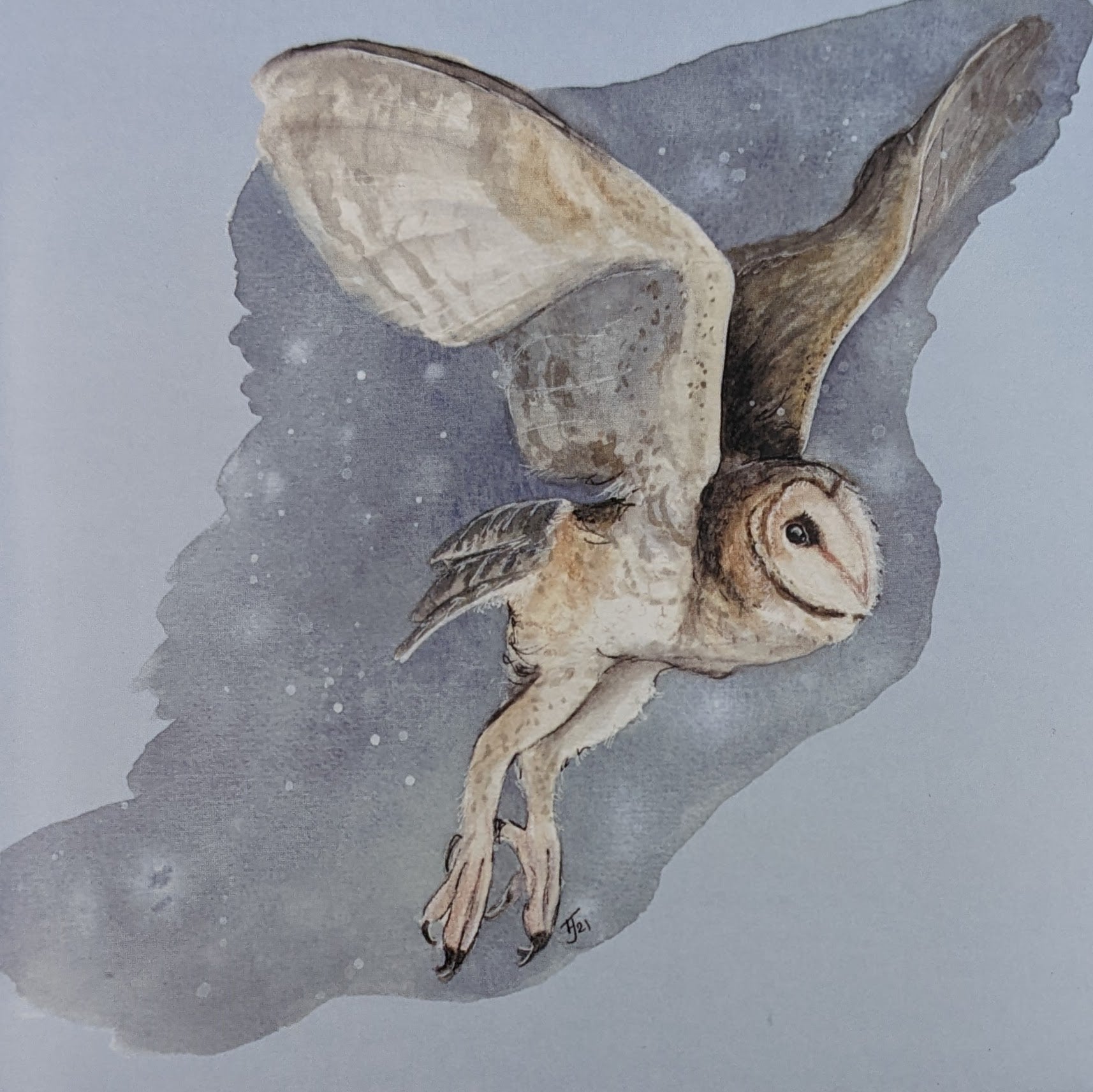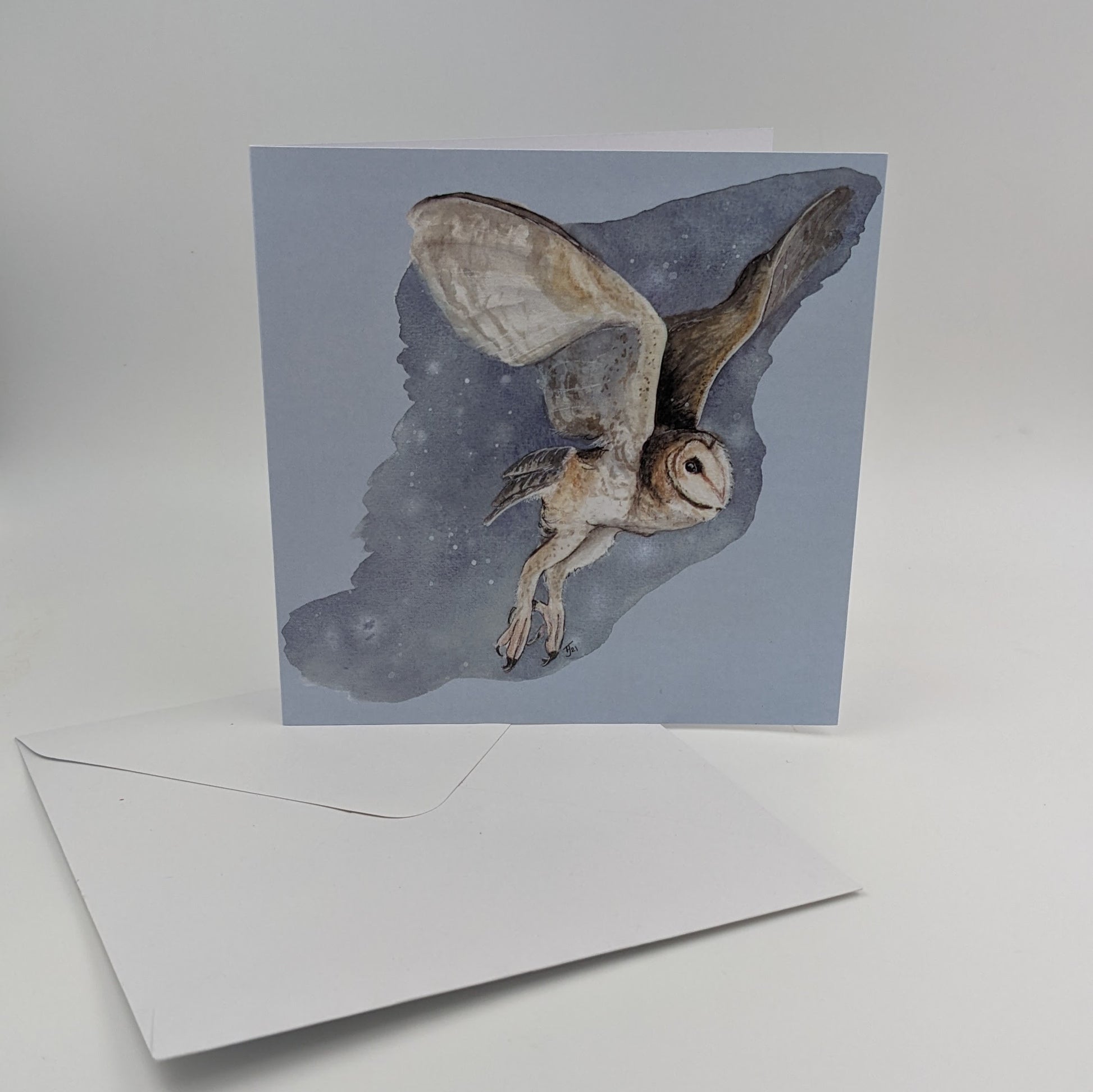 Blank Greetings card featuring a watercolour image of a Owl, taken from the original watercolour ''Silent Night''