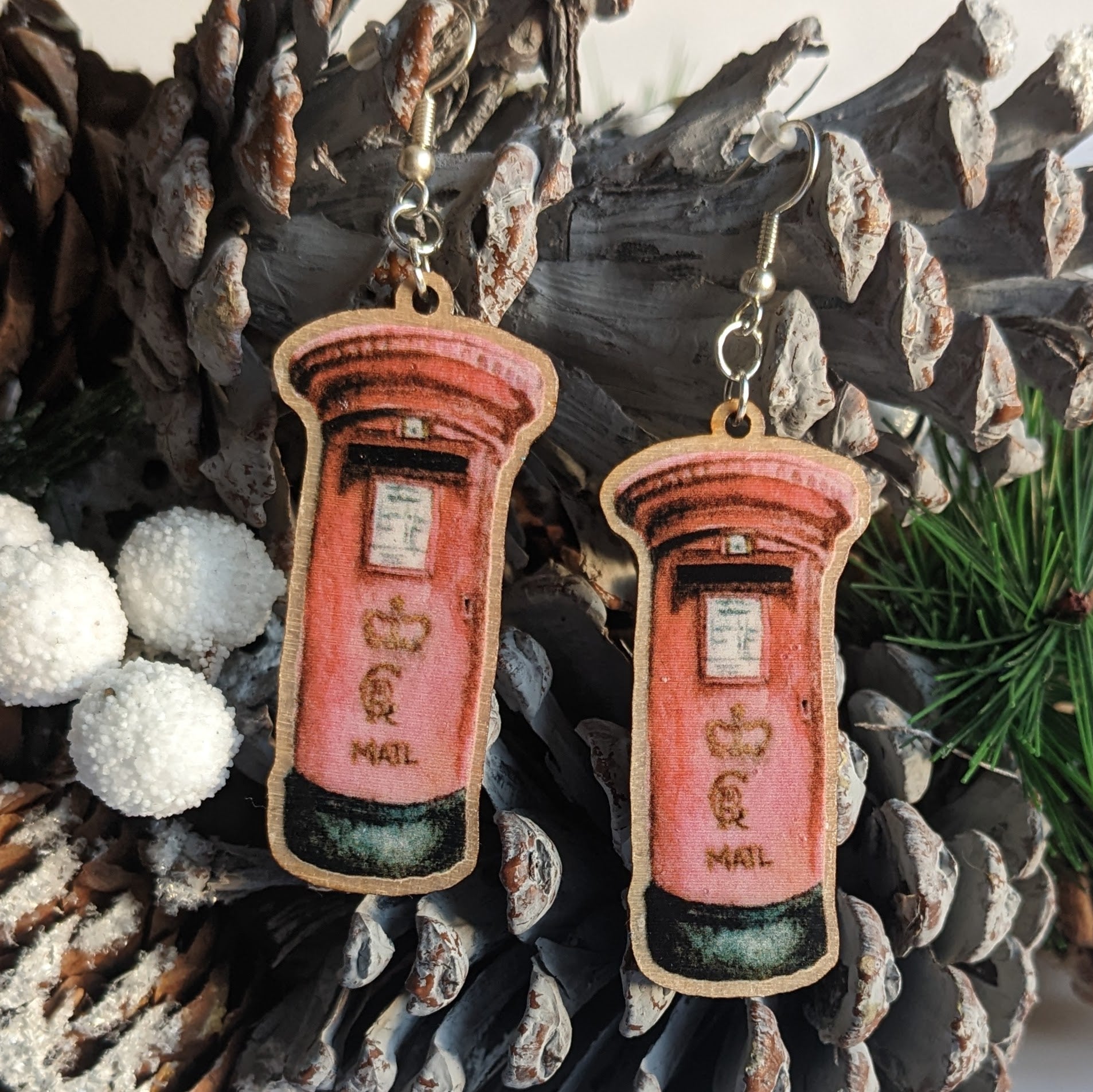 Each set of earrings is made using silver plated fish hook earring findings, with UV printed post boxes hanging down on sustainably sourced birch ply finished in a high sheen.