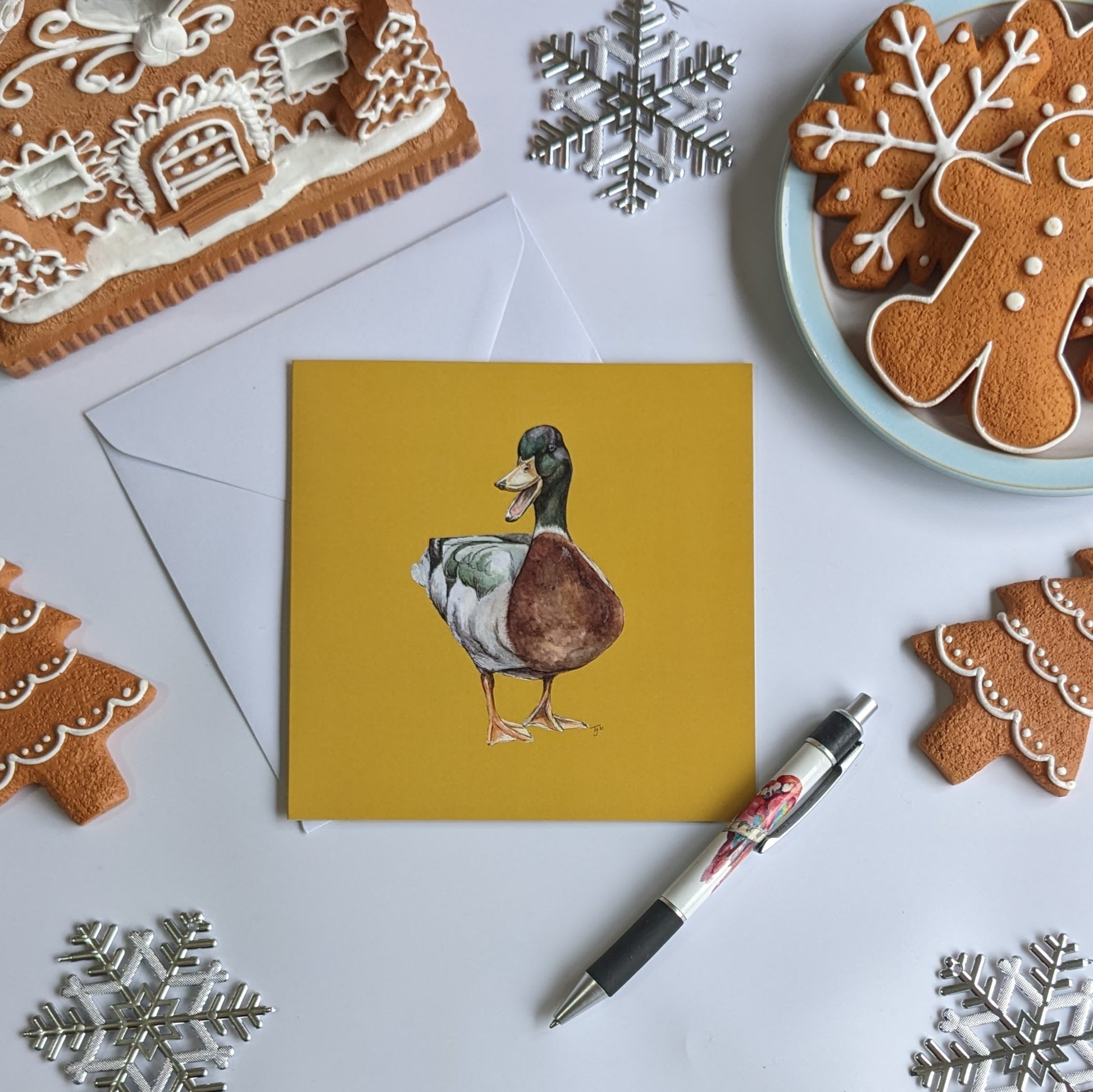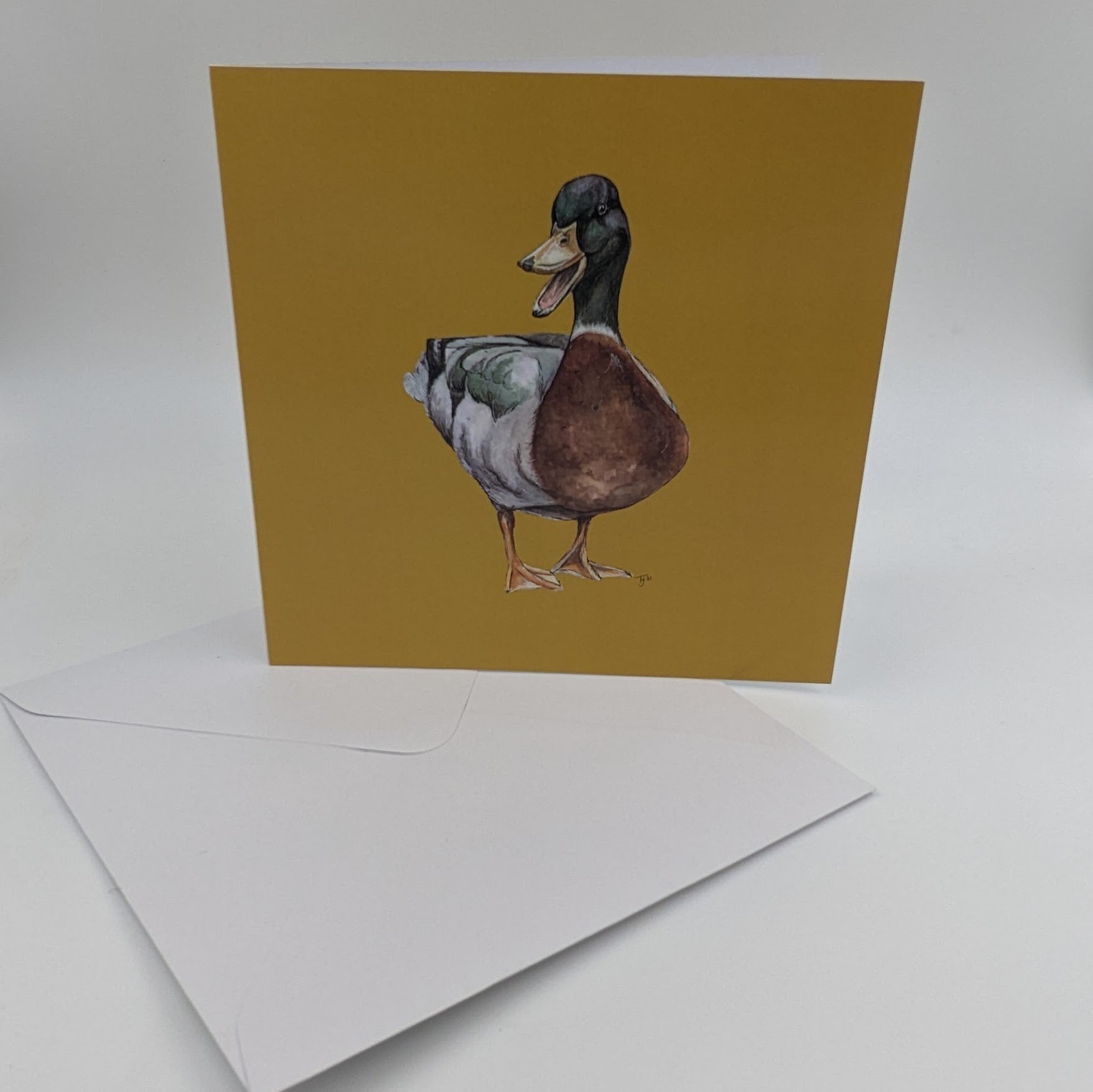 Blank Greetings card featuring a watercolour image of a Mallard Duck, taken from the original watercolour ''The Duke''