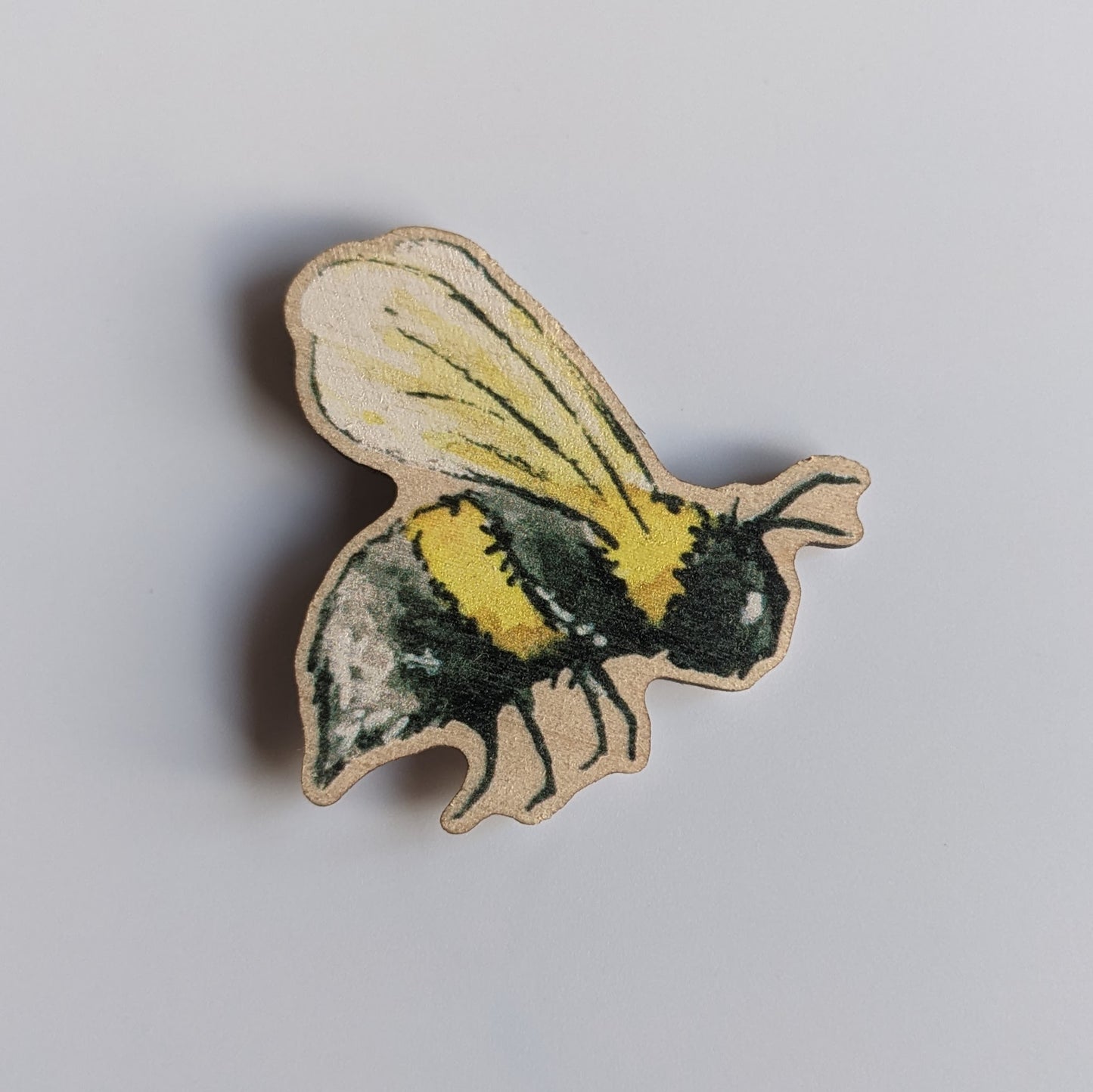 A wooden magnet featuring the a bee from an original Watercolour painting by me, Tara Pryor